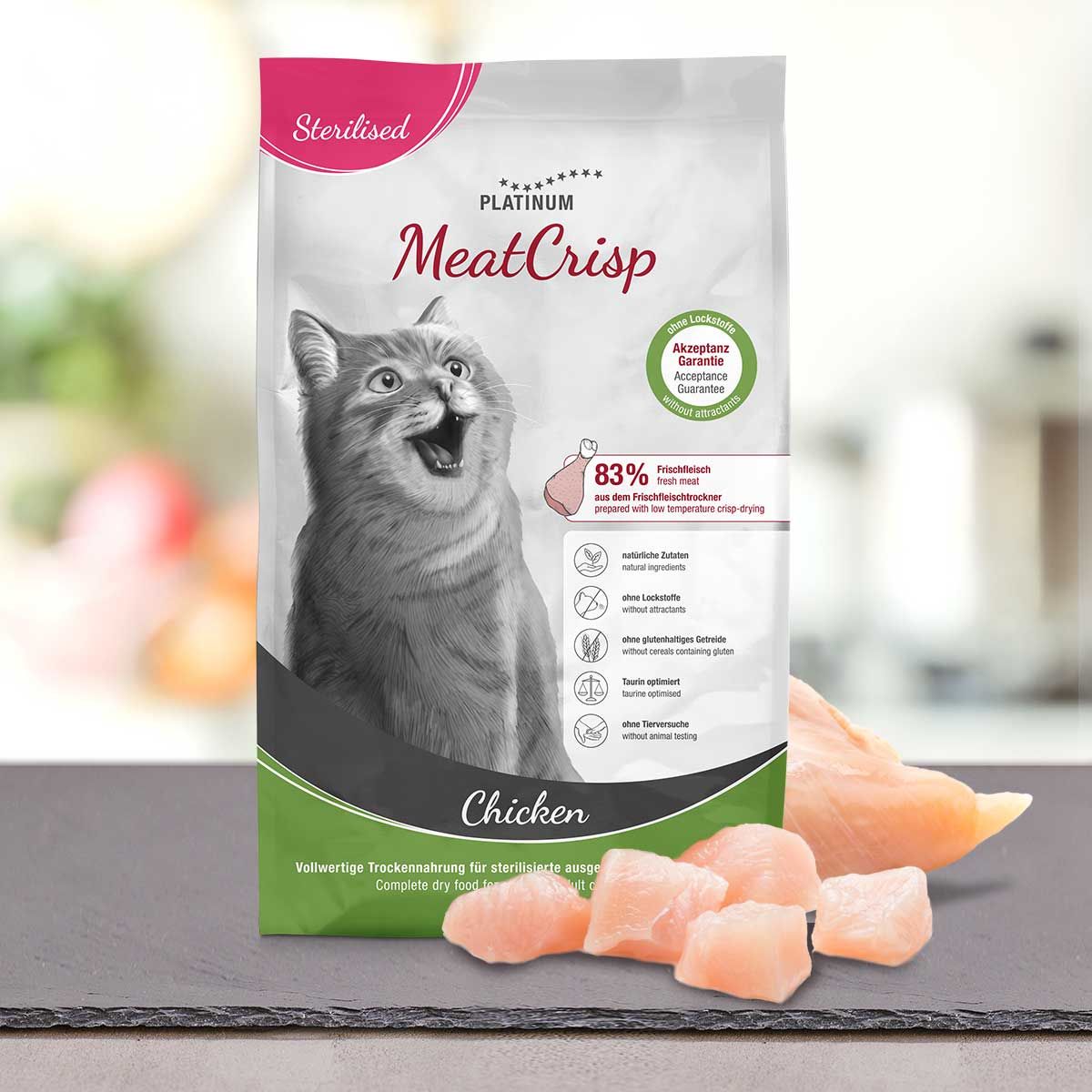 It is of course not a conventional dry food, because it comes from a fresh meat dryer. Therefore, it is meaty-crisp and does not require attractants.