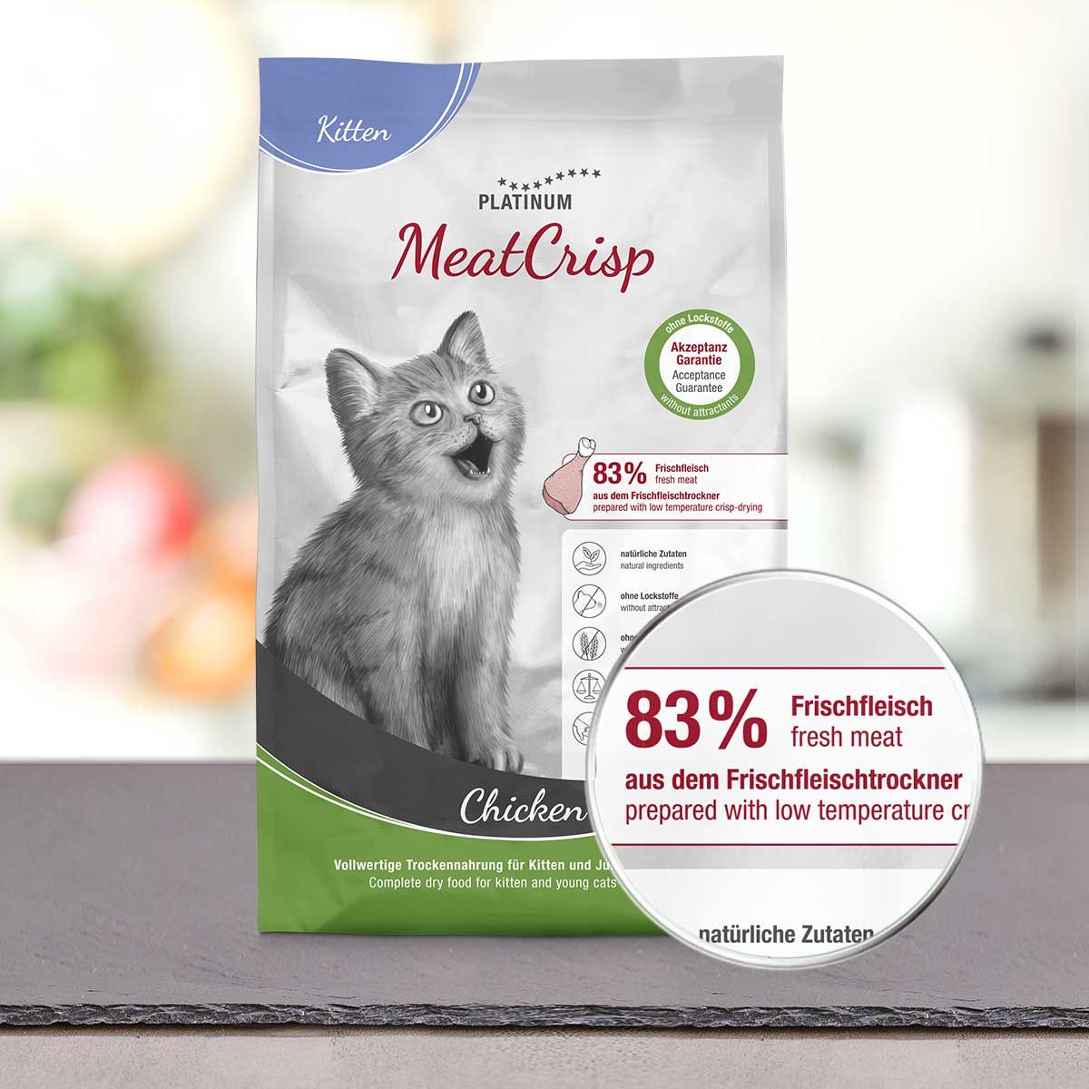 Freshmeatdryer (簡稱FMD)首次令到完全使用新鮮肉製備均衡完整的貓乾糧成為可能。 FMD 的突出特點:它保留了新鮮肉類的天然微量營養素和氨基酸。 因此,MeatCrisp 鮮肉脆比大多數其他貓糧更能替代作為貓的天然獵物。你的貓貓會感到更平衡和快樂。